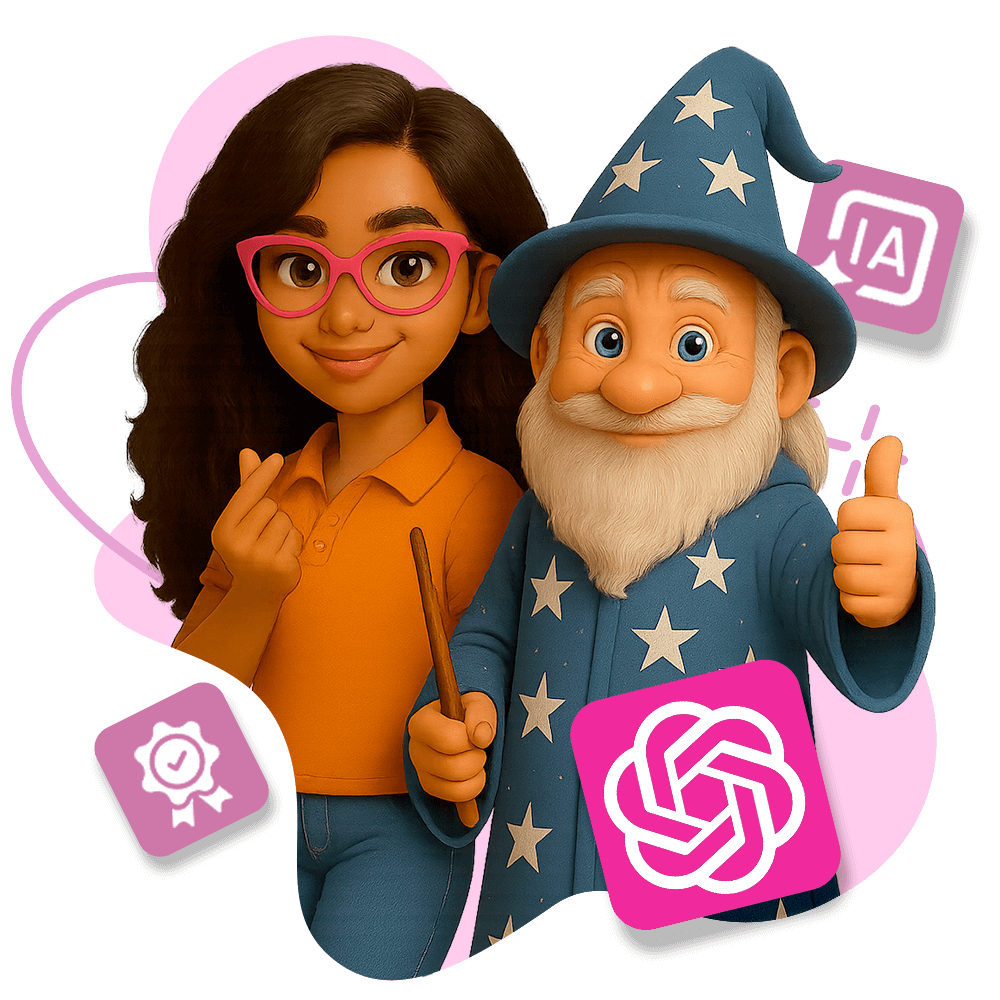Funciona com ferramentas gratuitas! O Curso ensina a usar IA em plataformas como ChatGPT (gratuito), Bing, Canva, Microsoft Designer, Freepik, entre outras — e ainda dá dicas de como economizar os limites diários.