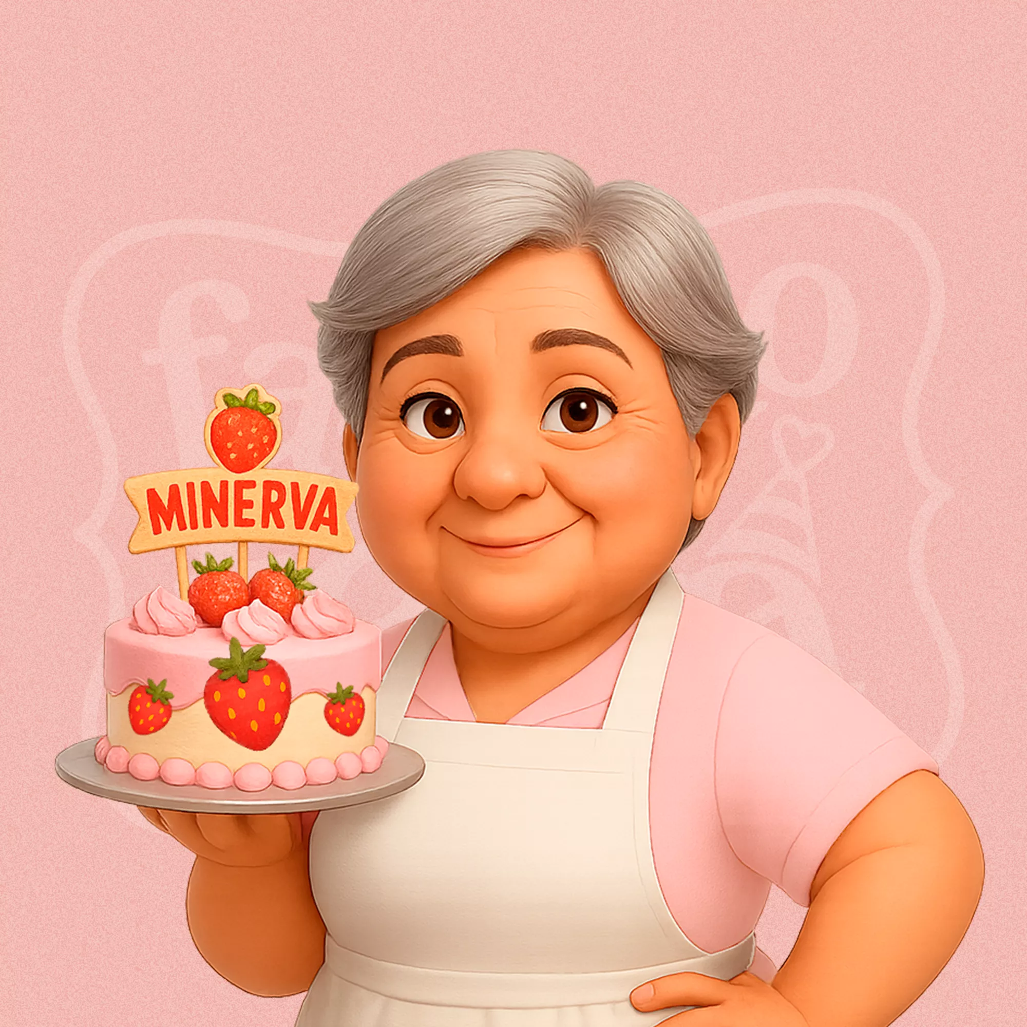 Minerva é a nossa robo especializada em mockups de Topo de Bolo e Bolos. Criando imagens incríveis sem precisar fazer um bolo de verdade.